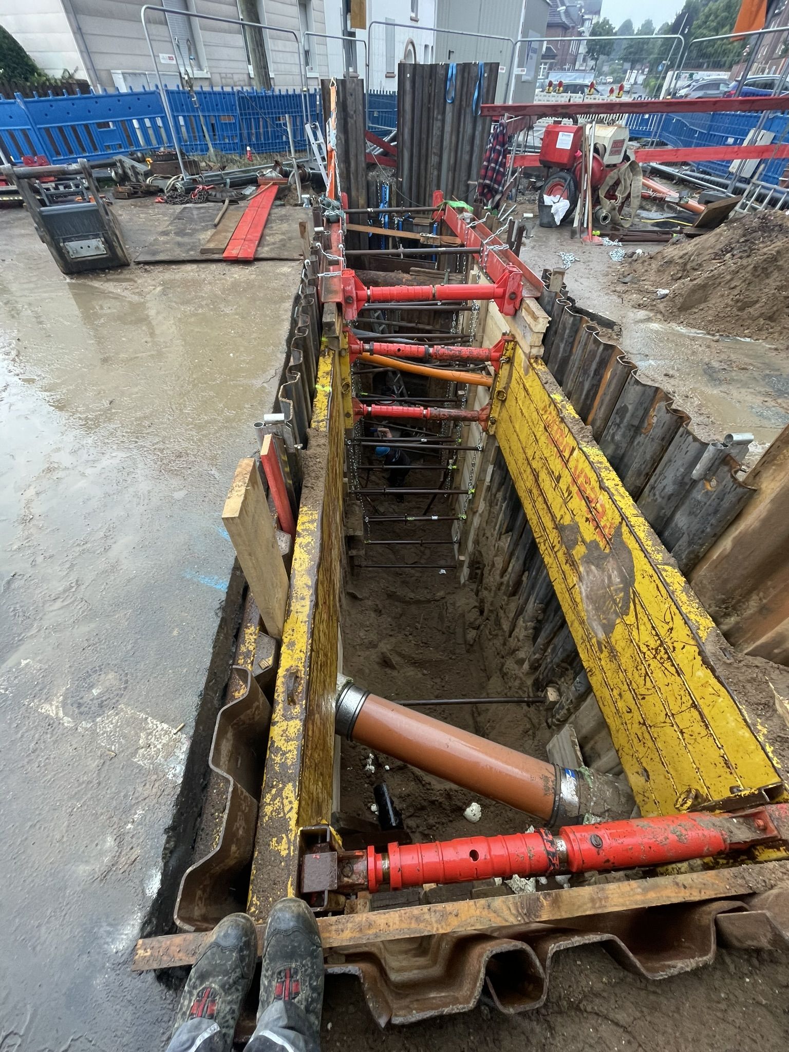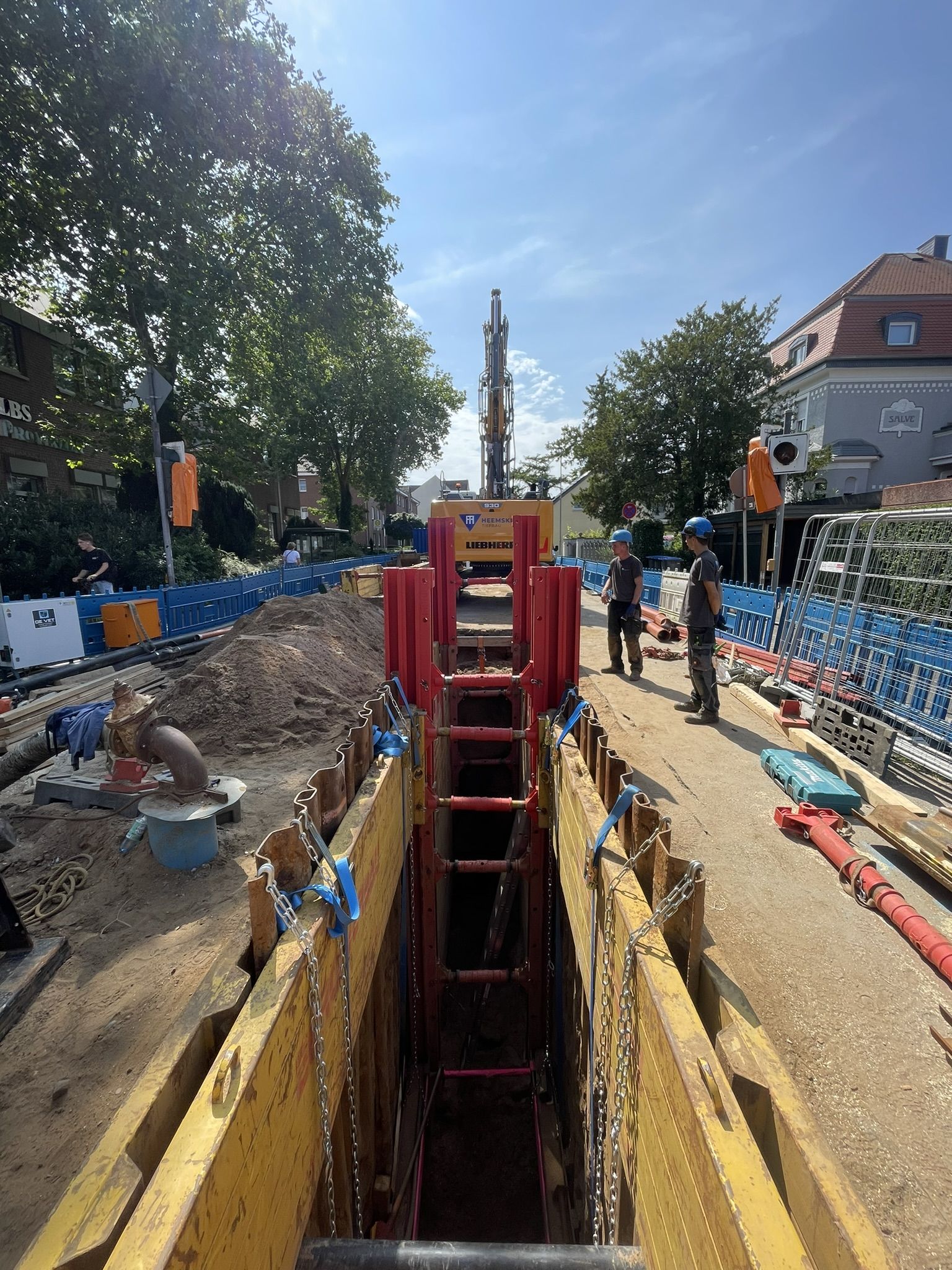 Die Maßnahme umfasste die Erneuerung der Schmutzwasserkanäle in Tiefen von bis zu ca. 6,70 m sowie der Regenwasserkanäle in Tiefen von bis zu ca. 4,00 m. Insbesondere zu Beginn des Projektes kam es zu erheblichen Startschwierigkeiten aufgrund eines außergewöhnlich hohen Grundwasserstandes, der die Herstellung der tief liegenden Kanaltrassen deutlich erschwerte.
