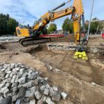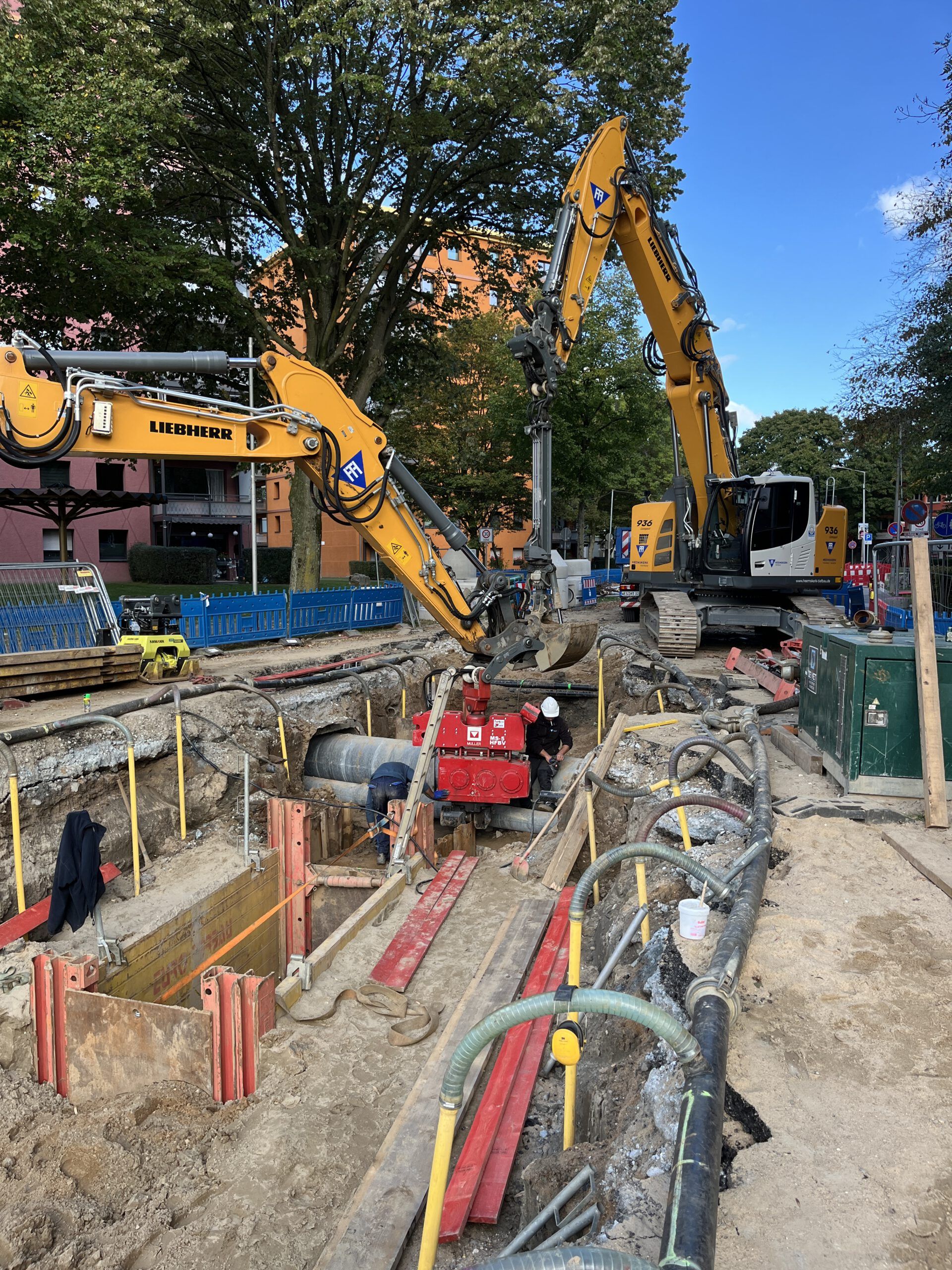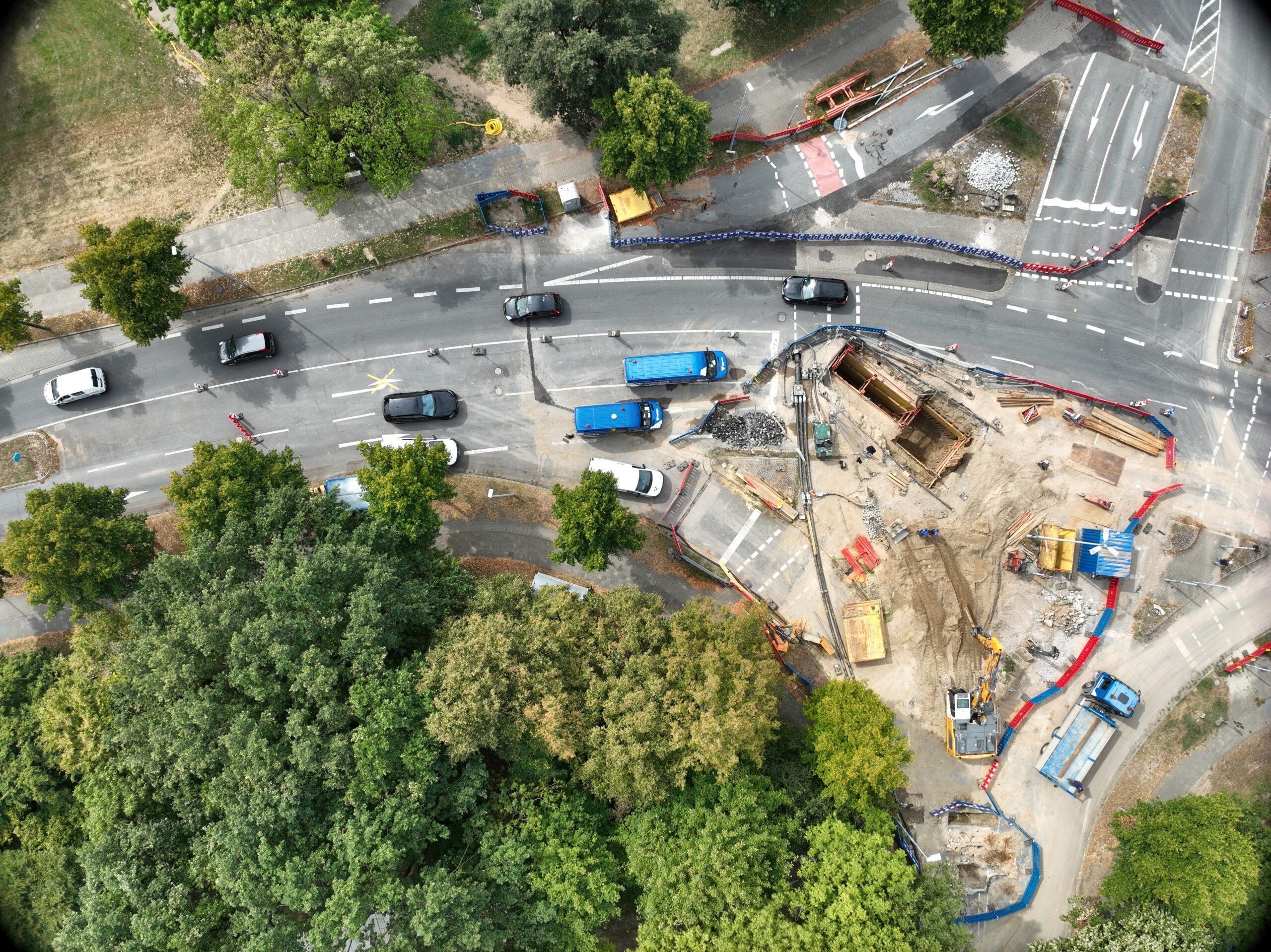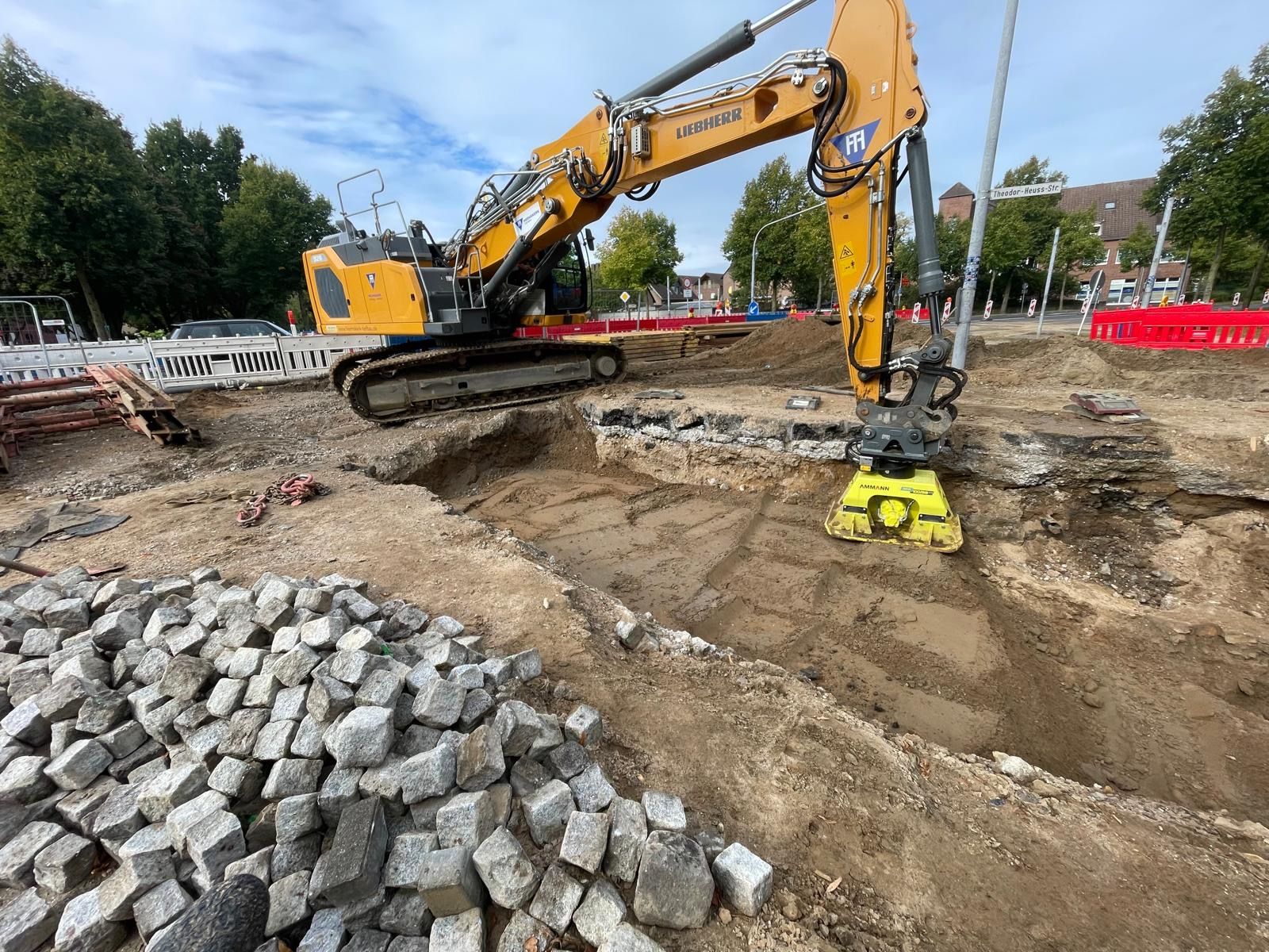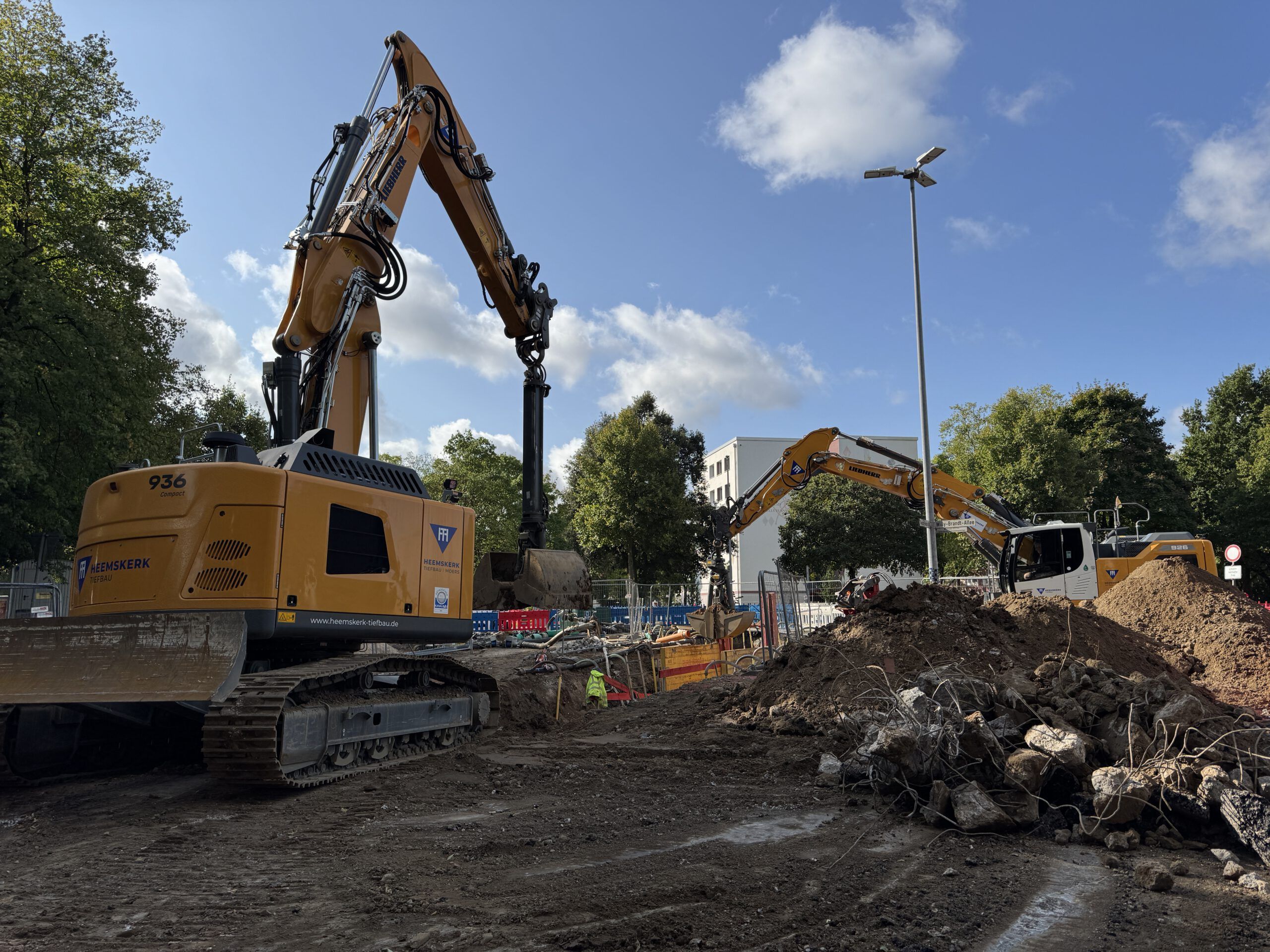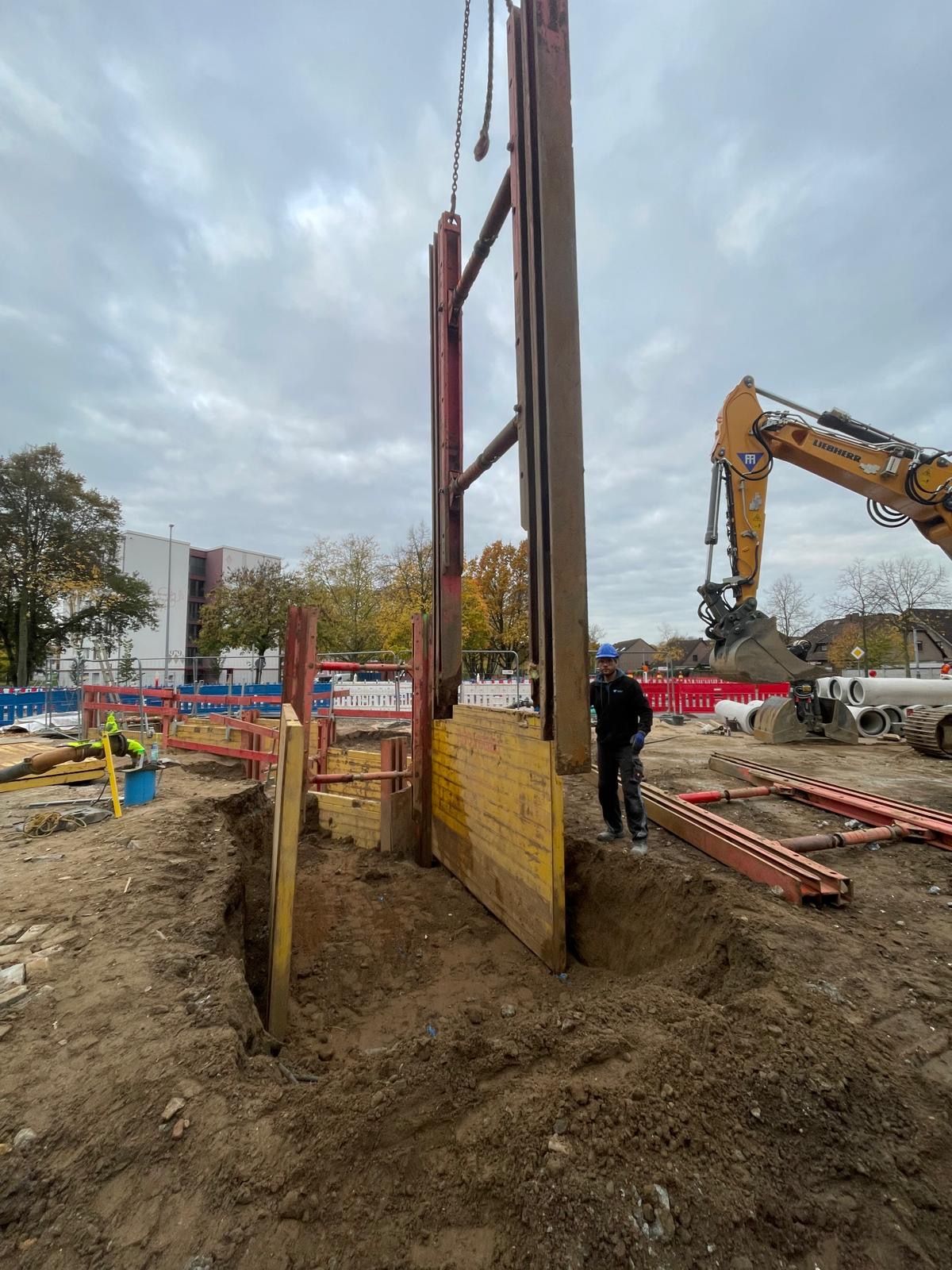 Im Zuge der Erneuerung der Rathausallee in Moers wurde ein öffentliches Straßen- und Kanalbauprojekt realisiert. In Arbeitsgemeinschaft mit der Firma Tummes Straßenbau übernahmen wir den Kanalbau.